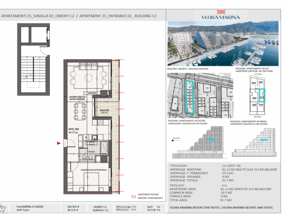 This apartment is part of the Premium Zone by Melia within the San Pietro Hotel & Residences located in Gjiri Lalzit. It is situated in Palazzina ”1A/5” and is labeled as Ap. 315 on the Second Floor.